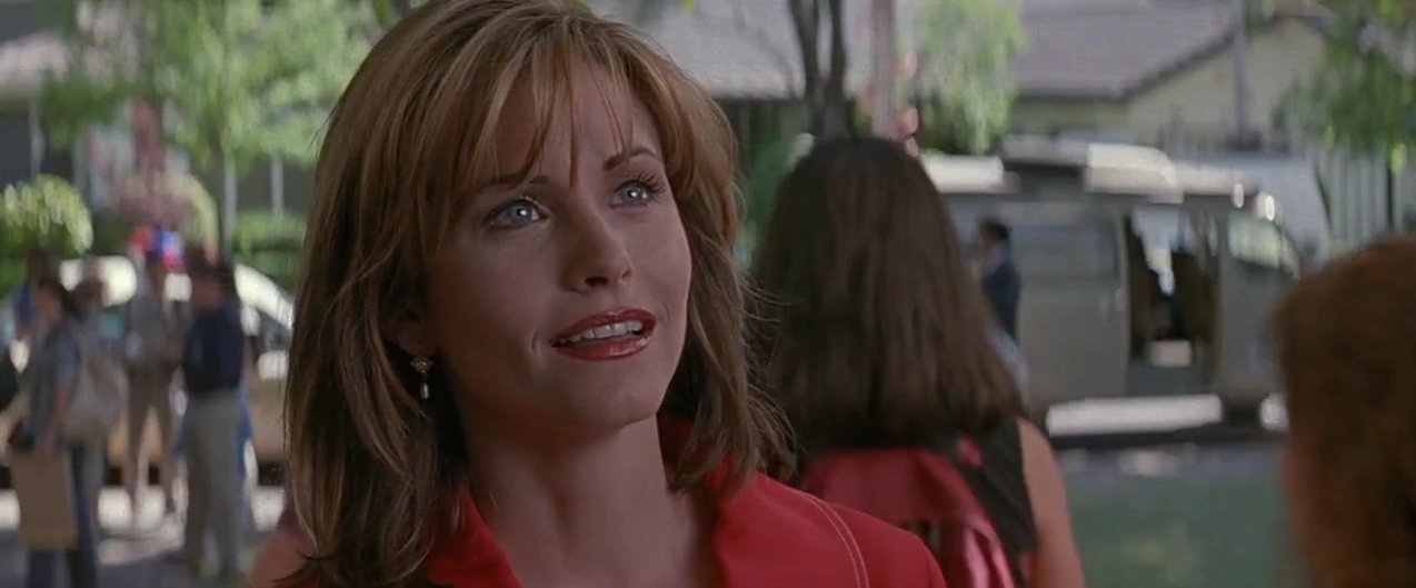Intentando sacra información sobre el nuevo crimen, Weathers se presenta ante Dewey Riley, quien estaba ingresando a la escuela de Woodsboro por el ataque que Prescott sufrió. Riley le dijo que sabia quieb era y le pregunto cordialmente como se encontraba, a lo que Weathers le dijo que muy productiva mientras preguntaba si había nuevos problemas en la escuela. Riley le respondió que no había problemas, y que ella no debería estar hay, a lo que Riley dijo que ella debería estar con Sharon Stone, pero que igual estaba en el campo. Intentando coquetearle para tener más información, Weathers le dijo que el era muy joven para ser oficial, a lo que Riley le respondió que tenia 25 años, haciendo que Gale resaltara que en una encuesta, ella era popular en hombre de 11 a 24 años, señalando que justo se lo perdió.