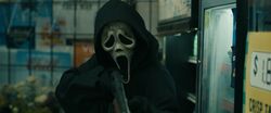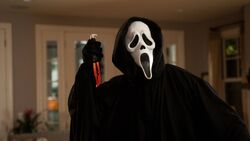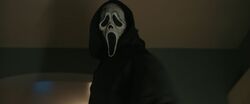 At the end of each film after the cast of primary characters is shown, Ghostface appears with a loud sound and performing a brief action before the rest of the credits roll. These brief gag appearances are non-canonical to the movie and exist only as a playful jumpscare to the audience.