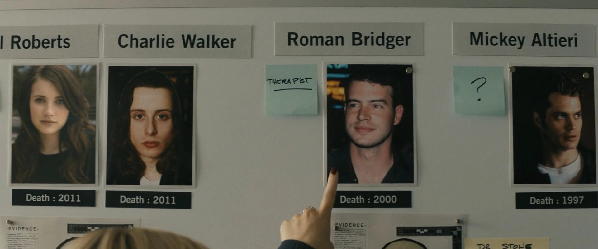 | Cameo Characters | Richie Kirsch (video footage) • Stu Macher (photo) • Amber Freeman (photo) • Jill Roberts (photo) • Charlie Walker (photo) • Nancy Loomis (photo) • Mickey Altieri (photo) • Roman Bridger (photo) | |