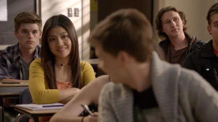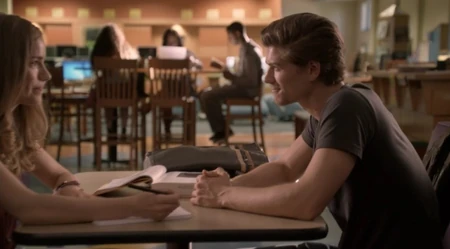 Riley and Noah discuss their scene for class. They decide to do a romantic scene.