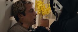 Wes, unaware this has happened, gets ready for dinner by preparing plates, cutlery and drinks and starts hearing noises in his house. He searches the house and finds the front door open, and when he closes it, Ghostface jumps out behind him and attacks. Wes tries to hold back Ghostface's knife, but the killer (Richie) is eventually able to force it through his throat and kill him.